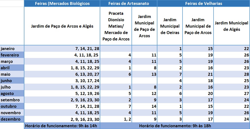 No concelho de Oeiras há várias feiras com características diversas, procurando-se ir ao encontro dos vários tipos de público e interesses.