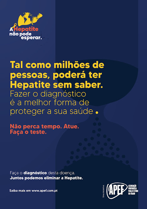 A Associação Portuguesa para o Estudo do Fígado (APEF) está a promover uma campanha nacional de consciencialização para as Hepatites Virais, sob o mote “A Hepatite não pode esperar”. Esta iniciativa surge no âmbito do Dia Mundial das Hepatites, que se assinala a 28 de julho, e decorrerá nos Media e nas redes sociais da associação, com o objetivo de alertar a população para a importância do diagnóstico das Hepatites, como evitar a transmissão de novas infeções e sobre o seu eficaz tratamento.